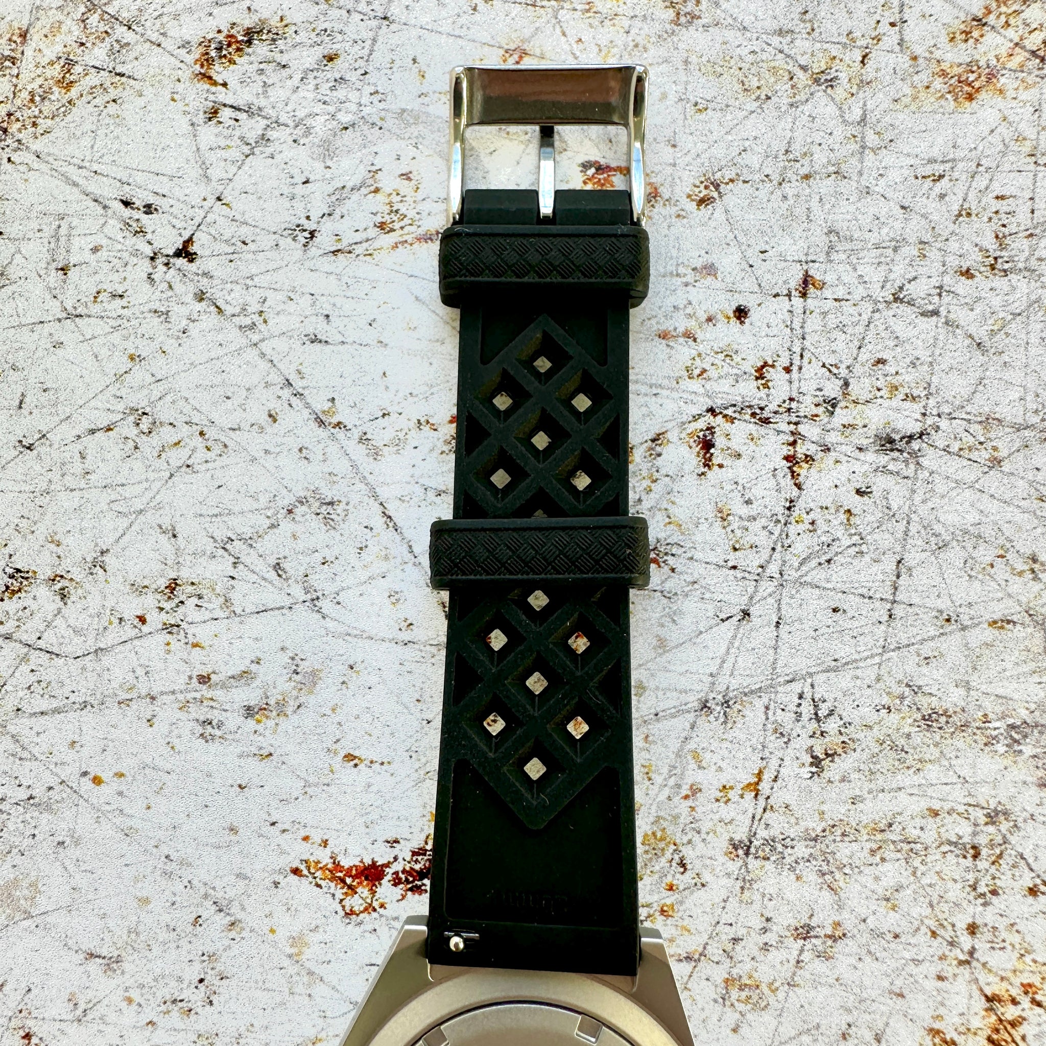 - Black FKM rubber tropical strap with pin buckle