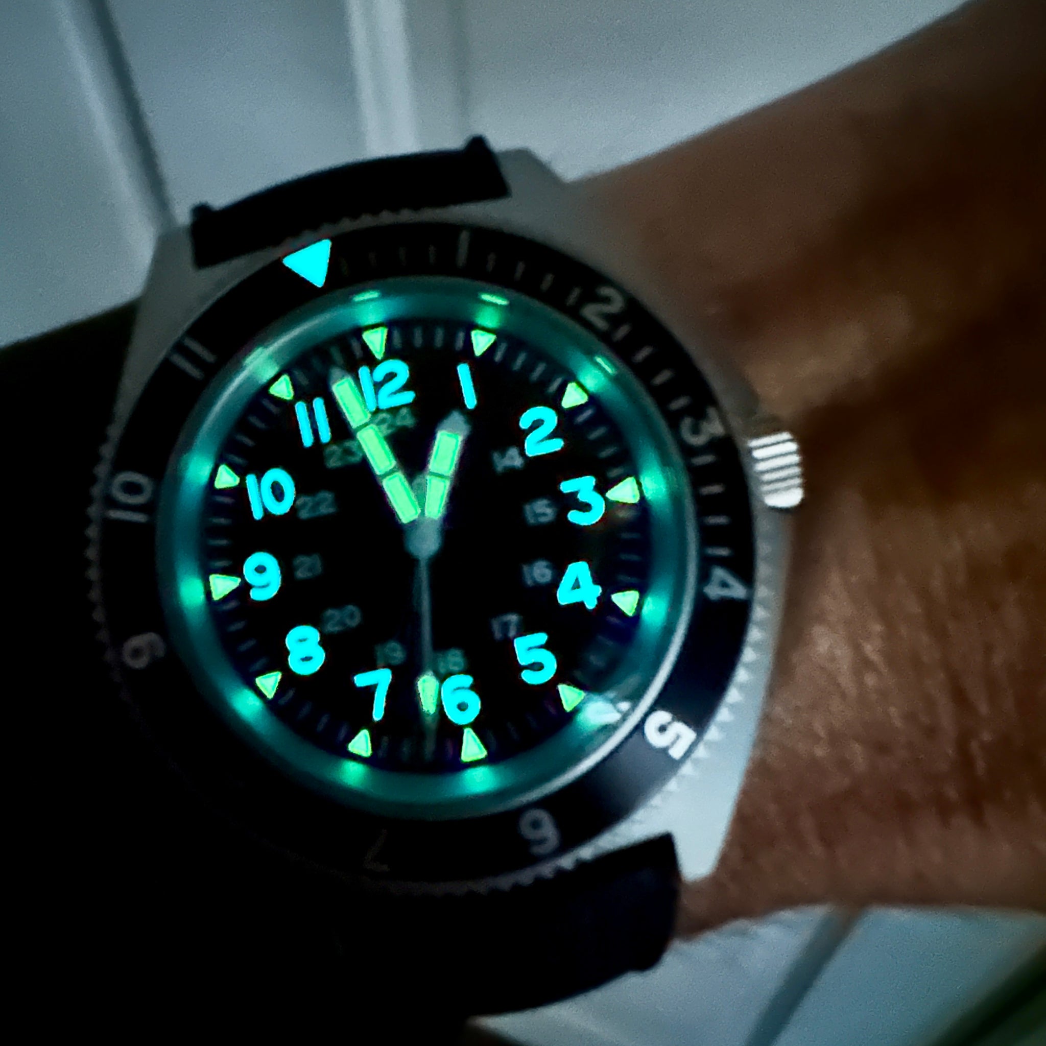Pressure tested to 200 metres of water Resistance, screw-down crown and caseback. I also wanted a 12 hour bezel that you can actually use to track a second time zone when travelling or drinking pina coladas in the pool in Tenerife.